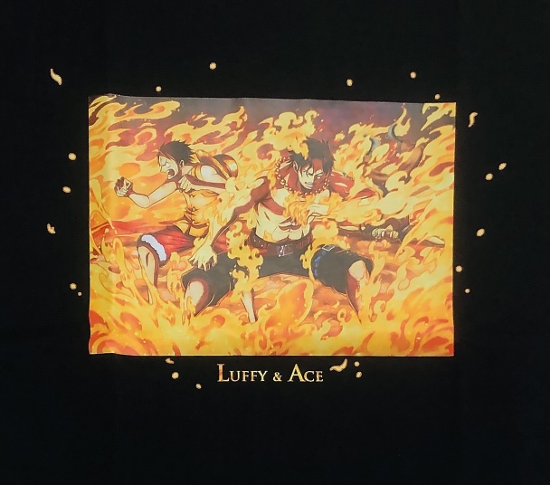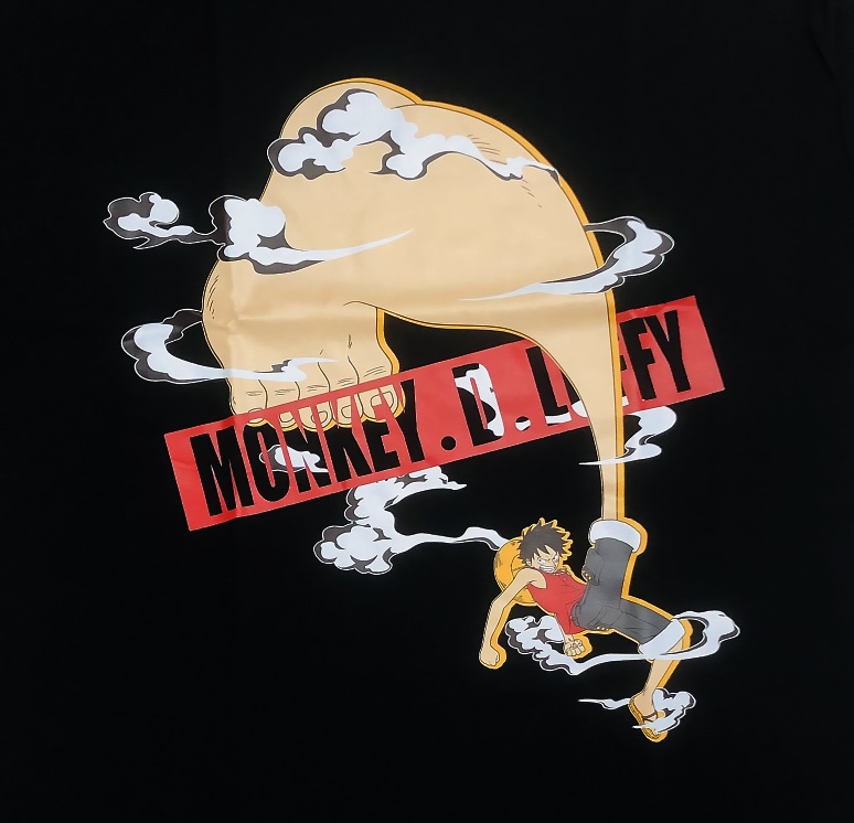 | 店長のコメント:ワンピース「エニエスロビー編」の名シーンのモチーフですね。ギガントアックスをCP9のロブルッチに放った場面がプリントしてあります。ボディがブラックなのでより迫力がある描写になっていますね! |