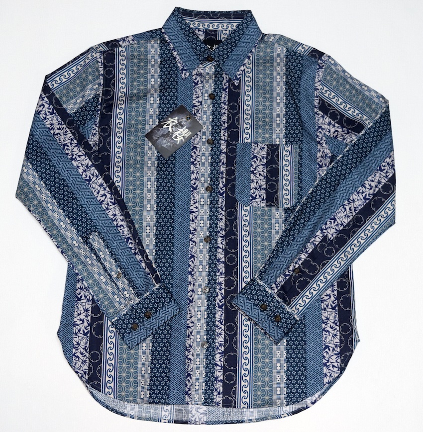 | 店長のコメント:うん!良い感じの「波柄」です!リアリティあり気味に描かれた「波」と、水墨画のスプラッシュのような並みのコンビネーションも良いハーモニーを奏でていてデザイニング的にも好きだなぁ!ホワイトにブルー気味のカラーリングにしてあるのも着こなしがしやすそうで良いではありませんか!春先、陽気につられて海へ行ったは良いけど半袖じゃ寒かった…なんて事が無い長袖なのもまたヨシなのです!さあ長袖アロハシャツで対応季節を広げてアロハシャツを楽しもう!! |